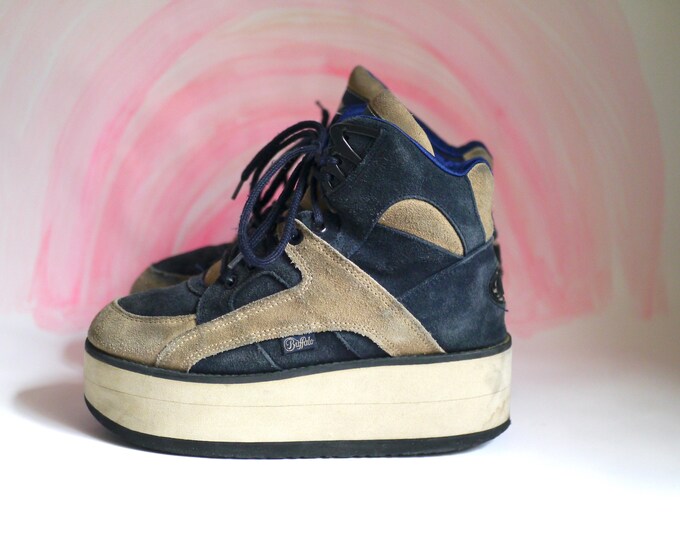 90s Buffalo Platform Sneakers, Suede leather, DE 38, techno boots Buffalo London
