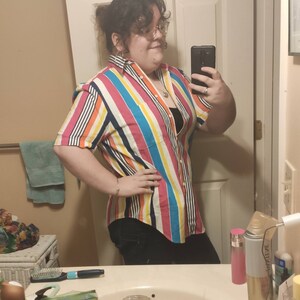 70's Pastel Tartan Blouse || Extra Large Size XL || Check Plaid Summer Short Sleeve Button Down Top || Cute Soft Periwinkle Blue Pink Yellow