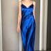 Women Silk Slip Dress Midi Cowl Neck Sleeveless Blue