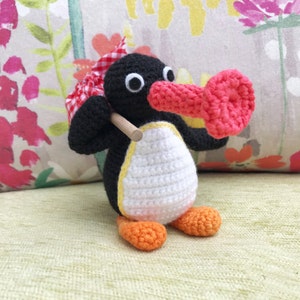 Bernie is made from acrylic yarn, plastic safety eyes, aluminium wire glasses, toy stuffing and his mask is felt and cotton. He has aluminium wire inside him. I recommend Bernie as a gift for adults of supervised children above the age of 5.