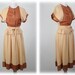 This is a lovely pale pink 80s dress with the loveliest long asymetrical peplum. The dress has a back zipper, dolman style sleeves for comfort and a beautiful rose printed silky polyester material. It is washable, (cold/delicate or hand) but hang to dry. (Never machine dry vintage) It is in excellent conditiion and is clean and ready to wear. It is a vintage 10, but vintage sizing is very different than modern sizing so go by measurements. I measure by laying flat the garment and doubling, except lengths which are actual.