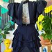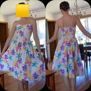 This is a lovely pale pink 80s dress with the loveliest long asymetrical peplum. The dress has a back zipper, dolman style sleeves for comfort and a beautiful rose printed silky polyester material. It is washable, (cold/delicate or hand) but hang to dry. (Never machine dry vintage) It is in excellent conditiion and is clean and ready to wear. It is a vintage 10, but vintage sizing is very different than modern sizing so go by measurements. I measure by laying flat the garment and doubling, except lengths which are actual.