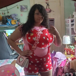 Lovely Chuu super kitsch red PVC frill HEART OVERALL <3