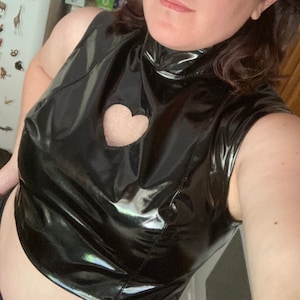 Bubble Goth Princess pvc glitter heart cut out BLACK CROP TOPJo Yin 05 Jul, 2022