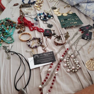 ** Some lots will be better than others, it's luck of the draw. All pieces are grabbed at random, one lot could have several bracelets while another lot is almost all necklaces. Rings are rare to come by, most rings I get are either too worn or missing stones and are not suitable for these lots.