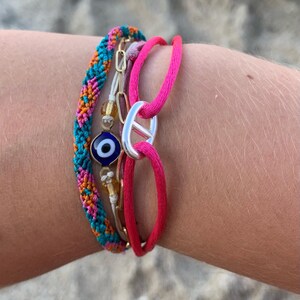 Silver plated rush bracelet with letter pellet with or without pompom- Custom charm with initial - silver plated 10 microns