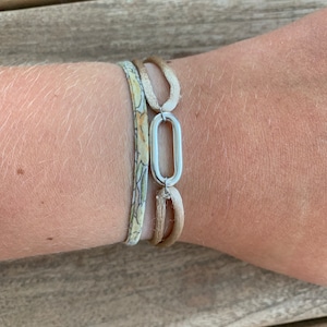 Liberty ribbon bracelet and toggle clasp - Accessorized with a pompom and round pellet - Silver plated - Customizable women's jewelry