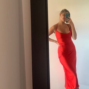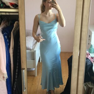 Cowl Neck Silk Dress For Special Occasions, Cami Silk Slip Dress In Blue, Elegant Satin Midi Dress, Silk Bridesmaid Dress With Cowl Neck