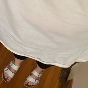 5 out of 5 starsThe material is amazing. It’s not the cheap, stiff cotton material, it’s thinner and soft without feeling cheap. It feels like a good quality material. I was really impressed. I’m 5’2 size xs and I ordered a medium for the oversized look and it’s perfect.