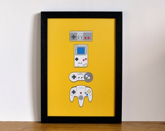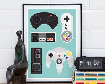 video game poster, geekery print, retro poster, game controller, man cave art, nursery art, play room decor A3, 11x14
