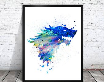 House Stark Watercolor Print, Game Of Thrones art, watercolor art, Game Of Thrones print,movie poster,Game Of Thrones Illustration