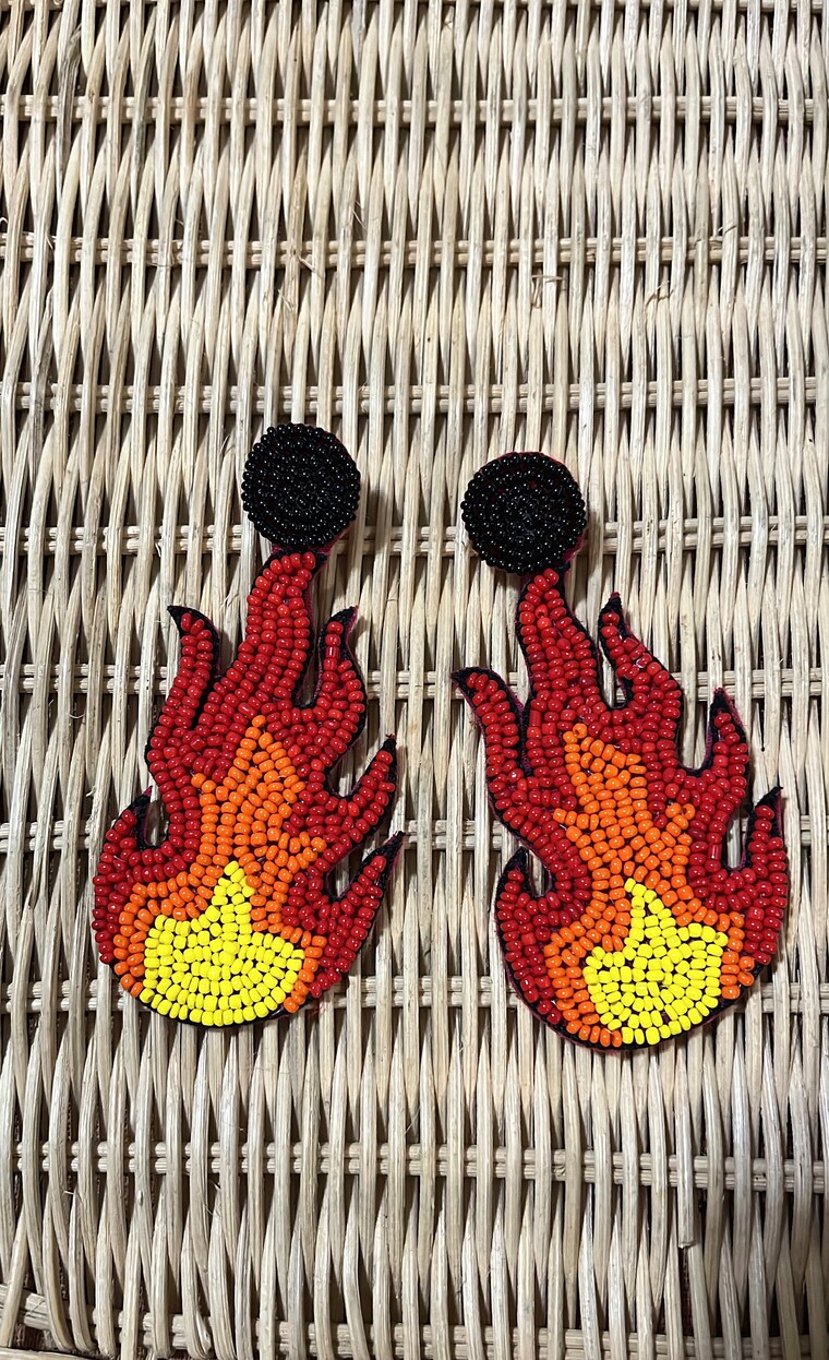 Burning Fire/ Camp Fire Earrings / Seed Beaded, Handcrafted with care -