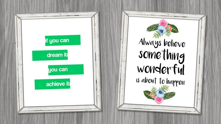 Printable wall art featuring inspirational quotes or words.