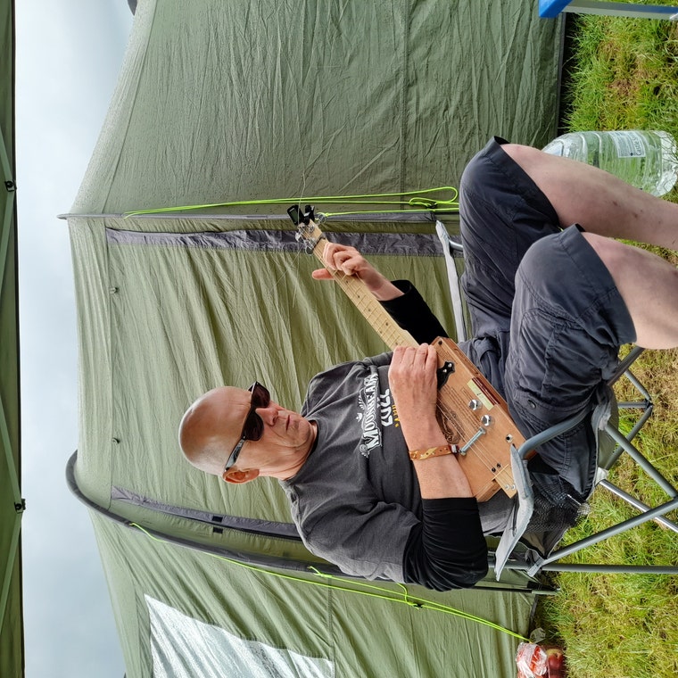 I got inspired by the people and surroundings of this little valley in West Yorkshire, to get off my sofa and have a go at making something pleasing to the eye which doesn't hit the environment. These little instruments originate in the poverty ridden Southern States. Don't throw stuff away - bolt it together, sand it, saw it, wire it up, tune it and play!