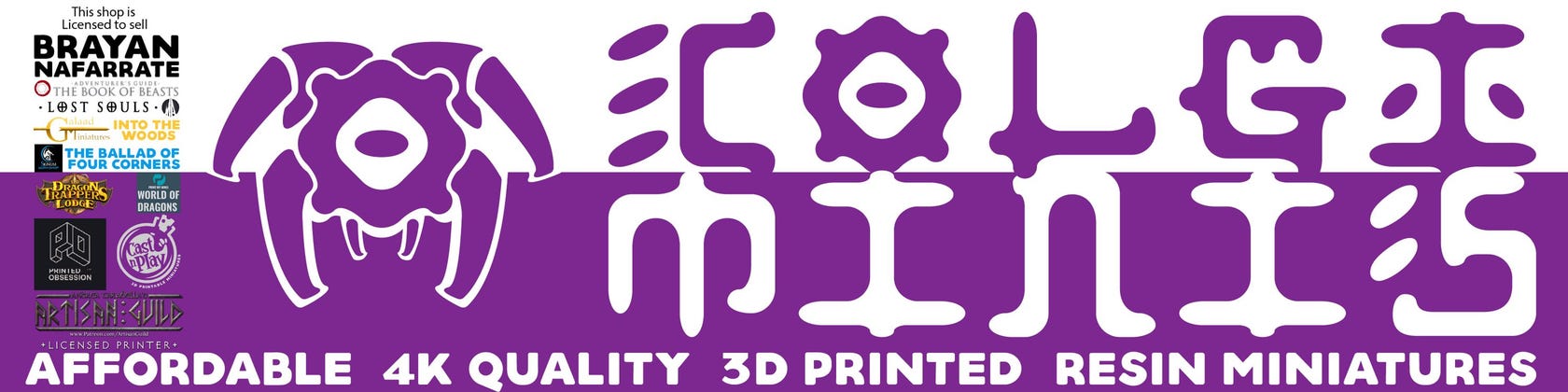Printed Obsession, CastnPlay, Dragon Trapper Lodge, Galaad Miniatures' Into the Woods, Brayan Nafarrate's collections, Monolith Arts' Lost Souls, Yasashii Kyojin Studio's Adventurer's Guide Vol. 1: Book of Beasts, Print My Minis' World of Dragons Kickstarters, Age of Signum: The Ballad of Four Corner and Artisan Guild! If there is a model you're interested in from these creators that we don't have in our store, feel free to message us as we can print it and list it!