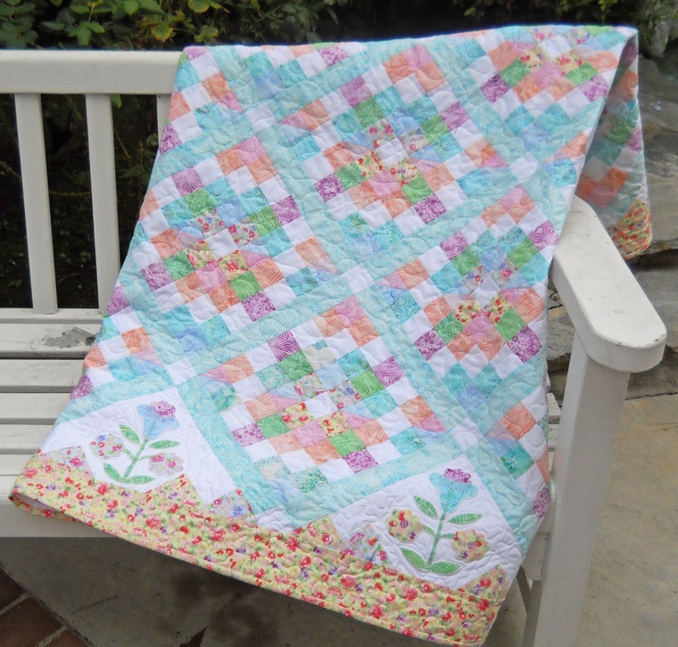 English Roses - Love this coordinated collection of Hoffman batiks with a sweet machine applique. -