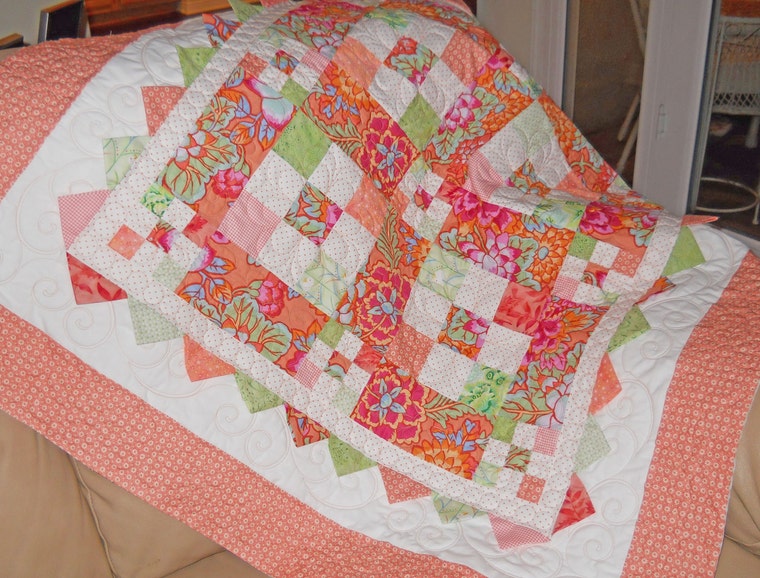 Tangerine Treat - one of my best selling patterns with sweet 9 patches in 2 sizes and finished with fun prairie points. -