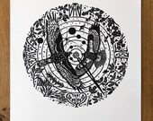 Handmade wood engravings printed on a traditional printing press. -