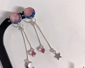 5 out of 5 starsI love these pretty pink sky design with moon star and pink crystals dangly earrings thank you.