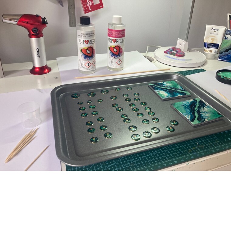 The paint takes 2-3 days to dry, then resin is applied and takes 72 hours to cure.. -