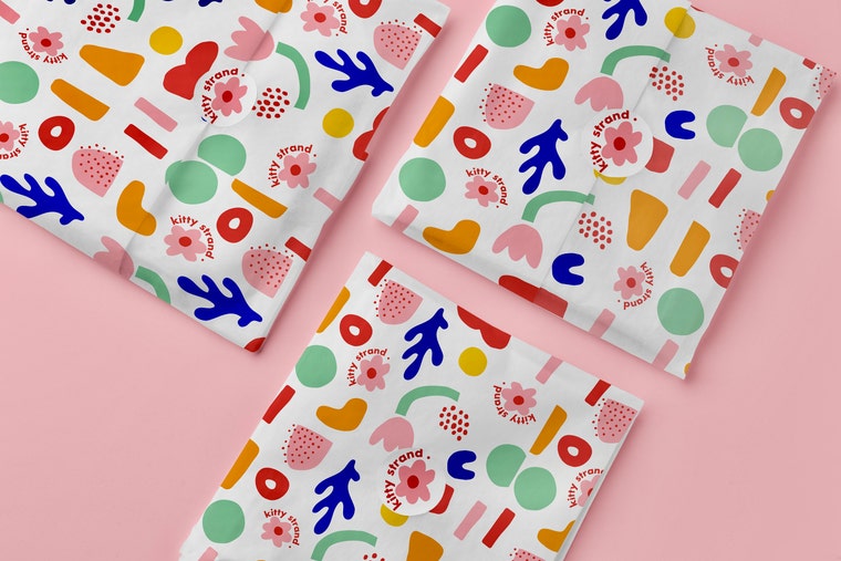 British designer Kitty Strand is based in England. Specialising in retro bold graphics, bright colours and typography. Their body of work reflects a desire to fill life and environments with colour and joy! Inspired by lived experience of disability