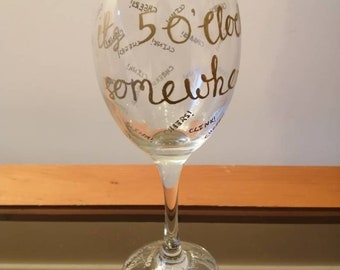 FIVE O'CLOCK wine glass - Personalised, hand painted, quote style, wine glass gift for mums, sisters, girlfriends, best friends