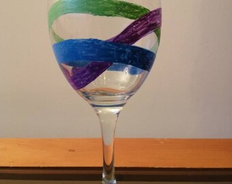 ABBY Wine glass - Personalised, hand painted, abstract style, wine glass gift for mum, sisters, girlfriend, best friend