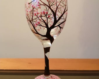 SPRING Wine glass - Personalised, hand painted, cherry blossom, wine glass gift for mum, sister, girlfriend, best friend