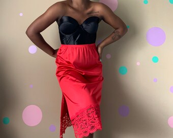 Women's Vintage Red Satin Skirt Size: Small