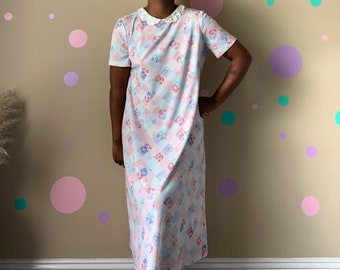 Women's Vintage Gingham Floral Print Dress Size: 7/8