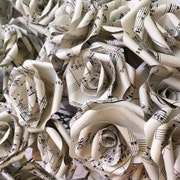 Paper flowers made using vintage sheet music and novels
