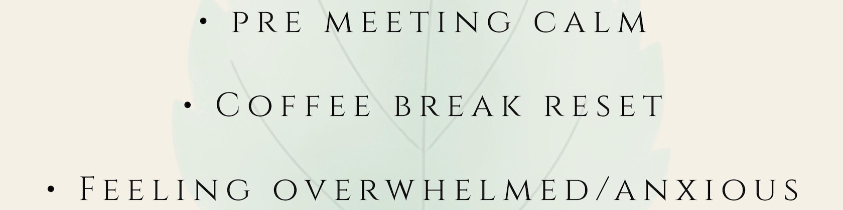 Anytime you need a reset - before a meeting, during a coffee break, after a stressful moment, or simply to pause and breathe.