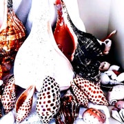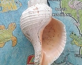 Toutes mes coquilles sont cueillies à la main et vides, et ont été nettoyées et blanchies. La plupart de mes plus grosses conques et bulots de cheval, j’essaie de les laisser dans l’état où je les ai trouvés, car je trouve que cela leur donne un caractère unique. Je ne blanchis pas le pariostracum des conques de cheval si j’ai la chance de les trouver avec cette belle couleur sombre.