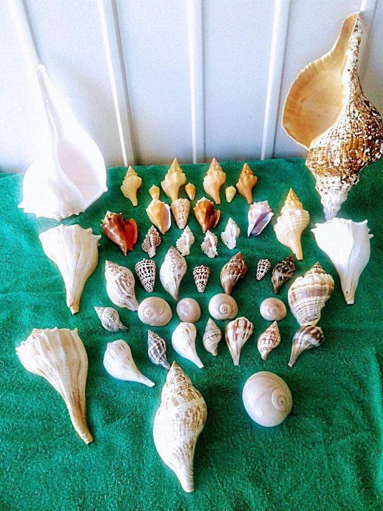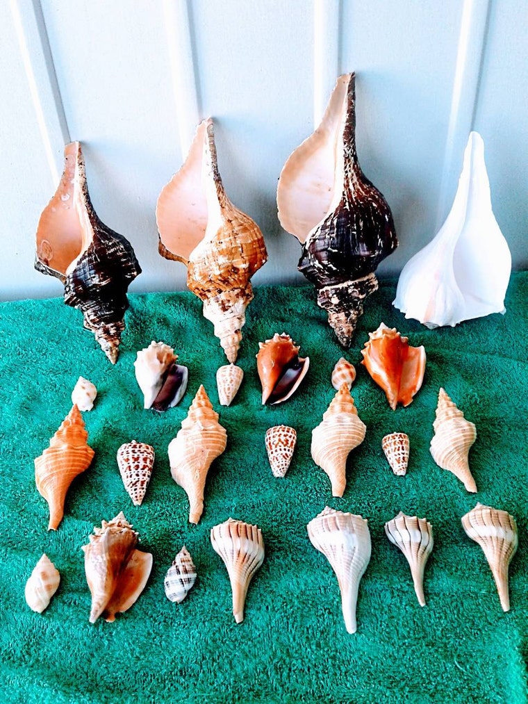 All my shells are handpicked and empty, and have been cleaned and bleached. Most of my bigger horse conchs and whelks I try to leave in the state that I found them as I find it gives them uniqueness. I do not bleach the pariostracum off of horse conchs if I am lucky enough to find them with that beautiful dark color.