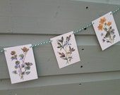 Hand printed fabric Easter bunting decoration, Easter decor, vintage illustrations, Easter party bunting decor