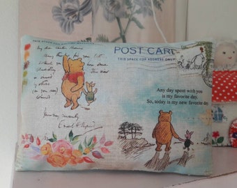 Winnie the Pooh decorative lavender or rose petal filled postcard pillows, hand printed, AA Milne, inspirational quotes, childhood books