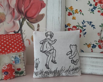 Winnie the Pooh, Christopher Robin and Piglet hand printed fragranced gift sachet, lavender gift, rose petal gift, Birthday gift, AA Milne