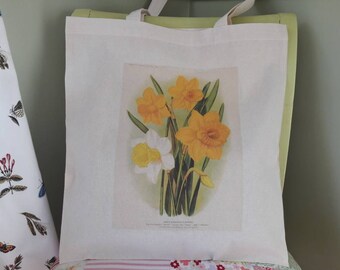 Daffodil Spring flower hand printed cotton shopper, bag for life, Easter gift, Daffodil gift, Spring decor, Birthday gift, eco friendly