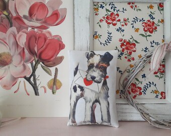 Fox Terrier love letter fabric fragranced gift sachet, love token, Valentine's Day gift, Mother's Day, lavender gift, rose petal sachet