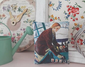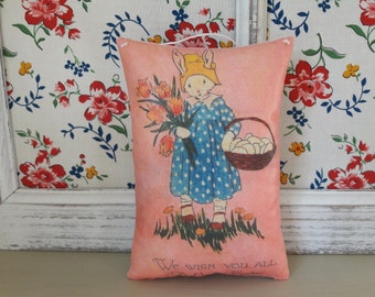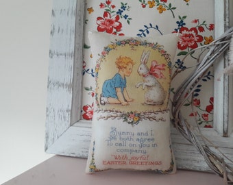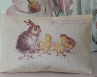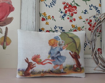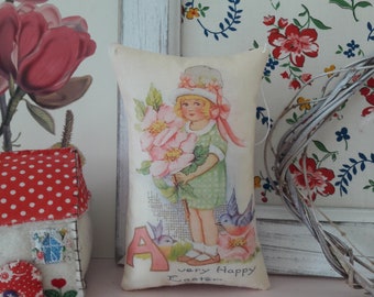 Fabric Easter pillow decoration, Spring time decor, vintage card illustration, fragranced pillow decoration, Easter gift, Easter decor