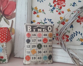 Button card fragranced lavender sachet, vintage buttons, Bingo card, sewers gift, seamstress gift, lavender gift, rose petal sachet