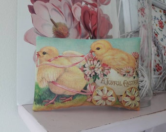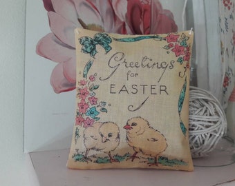 Vintage Easter Chick Fabric Postcard fragranced gift Sachet, Easter chicks, Easter gift decor, Easter home decor, lavender gift, rose petals