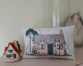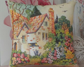 Cottage garden fragranced pillow decoration, Country cottage illustration, English garden, hand printed image, rose petal pillow, lavender