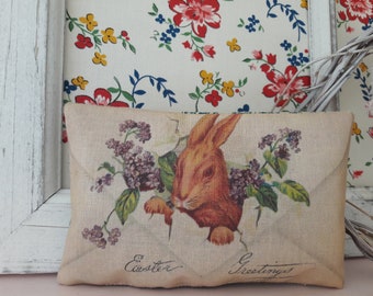 Easter bunny postcard fabric fragranced sachet, Easter greetings gift, bunny gift, lavender sachet, hand printed fabric, Easter bunny gift