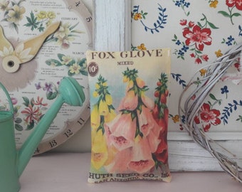Fabric seed packet fragranced filled sachet, gardeners gift, foxgloves, dahlias, summer garden, Spring decor, lavender gift, rose petal gift