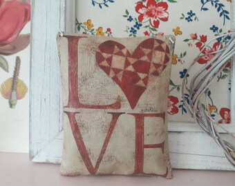 Love fragranced gift sachet, Valentine's Day gift, folk art, patchwork heart, primitive design, lavender gift, rose petal gift, love token