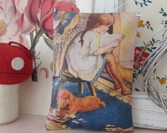 Anne Anderson vintage illustration hand printed fragranced gift sachet, gir and her dog, birthday gift idea, lavender gift sachet