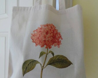Hydrangea shopper, botanical illustration, hydrangea gift, hydrangea book bag, gardeners gift, hydrangea flowers, blue hydrangea, florals