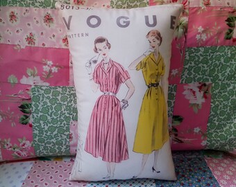 Vintage Sewing Dress Pattern Cushion, Hand printed fabric cushion, Vogue Sewing Pattern, Vintage Sewing Pattern Seamstress gift, sewers gift