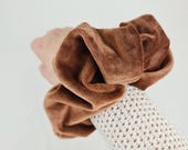 What started as a simple love for textiles and color has grown into a collection of scrunchies designed to be worn on repeat. Each piece is created with attention to detail, comfortable to wear and with fabrics that hold up. There are no over-the-top fluff or gimmicks — just well‑made essentials that make getting ready a little more enjoyable.